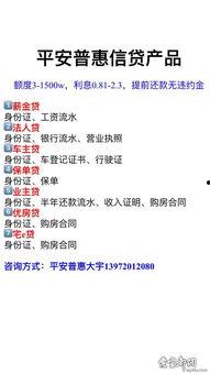 3. 个性化:根据用户的需求,平安普惠这次的产品提供了多种贷款方案,让你可以根据自己的实际情况选择最适合自己的方案。